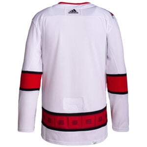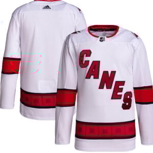 Stand out on the road with the Carolina Hurricanes White Away Jersey – All Stitched. Featuring stitched player details, embroidered logos, and carefully crafted patches, this jersey reflects Hurricanes dedication and North Carolina hockey loyalty.