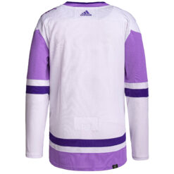 Support a cause with the Carolina Hurricanes White Purple Hockey Fights Cancer Jersey – All Stitched. Featuring stitched player details, embroidered Hurricanes logos, and purple-themed patches, this jersey allows North Carolina fans to join the fight while representing Canes pride.