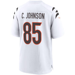 This Chad Johnson Cincinnati Bengals White Road Game Jersey – All Stitched is an essential piece of gear for any Cincinnati Bengals fan looking to highlight their favorite jersey and player. The Chad Johnson Cincinnati Bengals White Road Game Jersey and team details provide a kickoff-ready look that elevates your excitement for game day. Made with comfort in mind, this Personalized Cincinnati Bengals jersey delivers a standard, lightweight fit and features breathable mesh side panels for added ventilation.