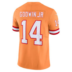 Chris Godwin Jr Tampa Bay Buccaneers 50th Season Orange Throwback Vapor F.U.S.E Limited Jersey – All Stitched bridges past and present with vintage orange flair. Every stitch—from Godwin’s embroidered number to the anniversary patches—honors 50 years of Buccaneers football and the pride of Florida fans.