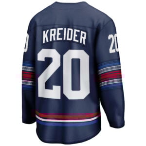 Turn heads with the Chris Kreider New York Rangers Navy Alternate Premium Jersey, a bold take on the Rangers’ traditional look. Representing New York state pride and the fearless energy of the NYR, this jersey features deep navy tones paired with powerful red and white accents. The embroidered logo, stitched name and number, and precision detailing showcase premium craftsmanship. Perfect for fans who crave a fresh look while honoring the team’s proud legacy, this alternate edition embodies New York’s toughness, style, and Kreider’s commitment to excellence on the ice.