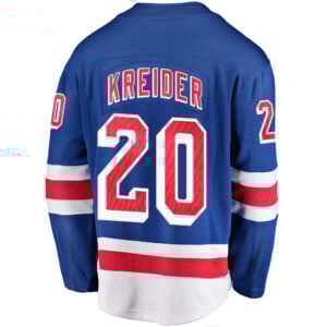 Celebrate your love for the New York Rangers (NYR) with the Chris Kreider Royal Home Premium Jersey, a timeless tribute to one of hockey’s most passionate franchises. This royal blue jersey reflects New York state pride with its bold colorway, red and white striping, and the team’s iconic crest. Every detail—from the stitched name and number to the embroidered Rangers logo and shoulder patches—is carefully crafted for long-lasting quality and comfort. Designed for fans who bleed blue, it brings the energy of Madison Square Garden to life and honors Kreider’s impact as a core leader of the NYR roster.