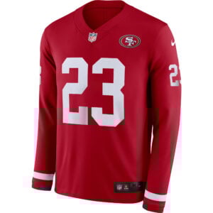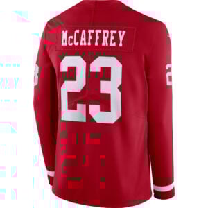 Represent the strength of California football with this San Francisco 49ers Scarlet Therma Long Sleeve Jersey featuring Christian McCaffrey. With fully stitched name and number and an embroidered SF logo, this jersey blends Niners history with modern star power. The vibrant scarlet color captures the intensity of the red & gold, while the Therma design keeps you warm during colder days.