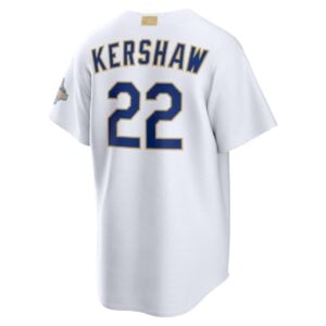 Elevate your game day attire with the Clayton Kershaw Los Angeles Dodgers White 2026 Gold Collection Jersey. This all-stitched piece celebrates a true legend of the Blue Crew. Clayton Kershaw has earned his place in history as a multi-time Cy Young winner and champion, making this jersey a vital tribute to his career. Represent your California state pride with a look that stands out in any crowd.