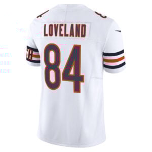 This Colston Loveland Chicago Bears White Road Vapor F.U.S.E Limited Jersey – All Stitched is an essential piece of gear for any Chicago Bears fan looking to highlight their favorite jersey and player. The Colston Loveland Chicago Bears White Road Vapor F.U.S.E Limited Jersey and team details provide a kickoff-ready look that elevates your excitement for game day. Made with comfort in mind, this Colston Loveland Chicago Bears jersey delivers a standard, lightweight fit and features breathable mesh side panels for added ventilation.