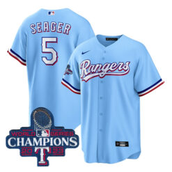 Corey Seager Texas Rangers 2023 World Series All Stitched Jersey – Light Blue