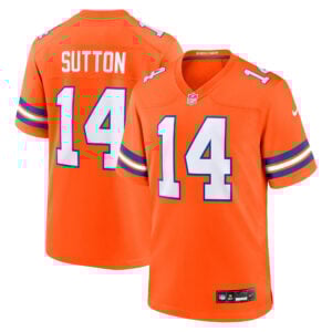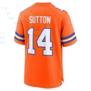 Honor the Mile High legacy with the Courtland Sutton Denver Broncos Orange Mile High Collection 1977 Throwback Game Jersey – All Stitched. Stitched name and number meet embroidered Broncos logos and the iconic throwback patch, celebrating Colorado football history and Denver state pride.