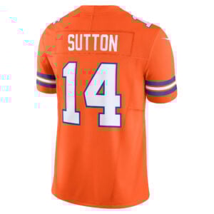 Step up your game with the Courtland Sutton Denver Broncos Orange Mile High Collection 1977 Throwback Vapor F.U.S.E Limited Jersey – All Stitched. Modern design meets vintage style with stitched player details and embroidered patches that connect fans to both today’s excitement and Denver’s football roots.