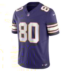 The Cris Carter Minnesota Vikings Purple Classic Vapor F.U.S.E Limited Jersey – All Stitched honors heritage with modern precision. With stitched names, embroidered numbers, and detailed logos, this jersey captures Carter’s legendary role while embodying Minnesota football pride.