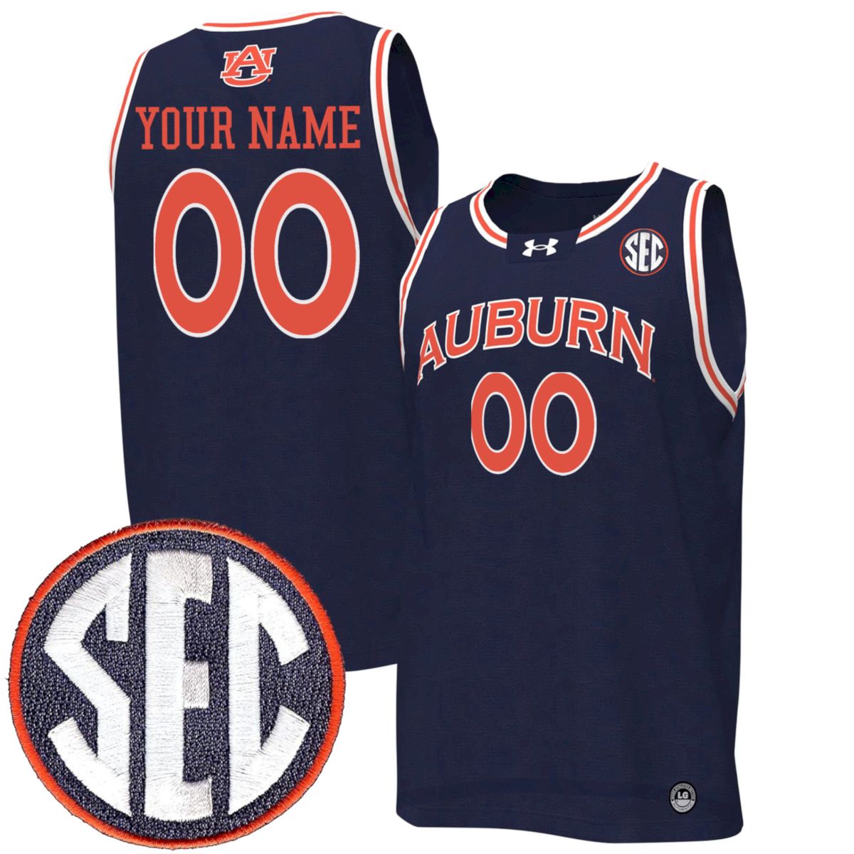 Custom Auburn Tigers Basketball 2024/25 Navy Away Jersey w/ SEC Patch – All Stitched