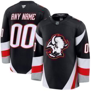 Bring intensity to your collection with the Custom Buffalo Sabres Black Alternate Premium Jersey. Representing the power and pride of New York’s hockey legacy, this bold black design is a fan favorite. Featuring detailed stitched name, number, patch, and embroidered logo, every element exudes quality and durability. The black alternate edition captures a modern edge while honoring Sabres tradition, making it perfect for game nights, collections, or casual wear. Express your dedication by customizing it with your name or your favorite player’s, turning this into a true statement of Buffalo pride. Whether you’re roaring in the stands or repping your team around town, this jersey reflects the toughness and heart of the Sabres fanbase. Bring the energy, wear the pride — Buffalo strong!