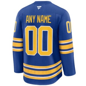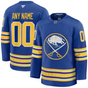Show off your love for the Buffalo Sabres with the Custom Royal Home Premium Jersey. Representing the heart of New York hockey, the Sabres are a symbol of grit, tradition, and state pride. This home royal design features the team’s classic blue and gold colorway, bringing a bold and timeless look to your collection. The name, number, patch, and logo are all fully stitched or embroidered for a high-quality finish that’s built to last through every celebration and rivalry night. Whether worn at KeyBank Center or while cheering from home, this jersey embodies Buffalo pride and passion for the game. Perfect for customization, you can personalize it with your favorite player or your own name and number, creating a one-of-a-kind piece of Sabres history. Bring energy, loyalty, and state pride to every game with this premium stitched home jersey!