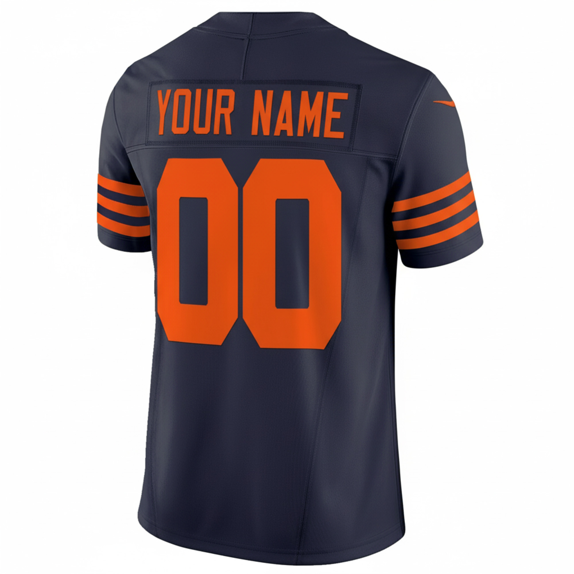 Honor one of Chicago’s most legendary figures with this Custom Chicago Bears Dick Butkus Honor Navy Throwback Vapor F.U.S.E Limited Jersey. Featuring a retro-inspired navy design, it proudly represents CHI football history and the grit Butkus brought to the field. Your custom stitched name and embroidered numbers offer a personalized update, while embroidered patches and Bears logos maintain the classic throwback spirit. Built to celebrate Chicago pride through a timeless lens, this jersey blends legacy and modern customization for fans who value tradition.
