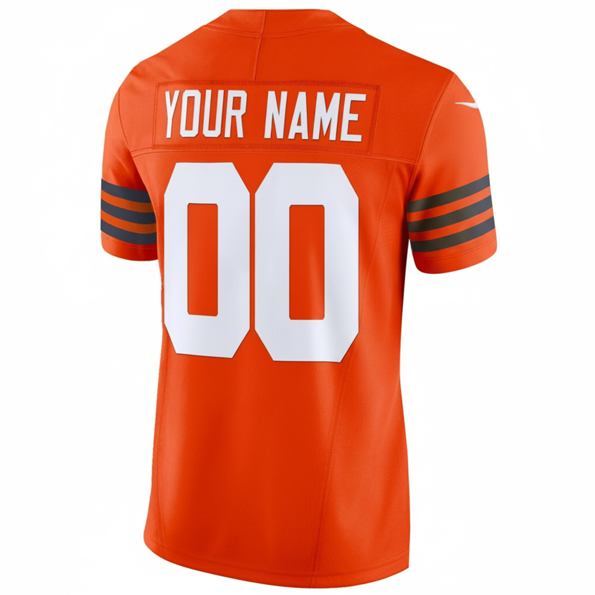 Show love for Chicago’s football heritage with this Custom Orange Dick Butkus Honor Throwback Vapor F.U.S.E Limited Jersey. The bright orange shade showcases CHI pride with a vintage twist, blending old-school identity with modern personalization. Your custom stitched name and embroidered numbers elevate the design, while embroidered Bears logos and patches reinforce the team’s historic energy. A perfect mix of color, tradition, and customization, this jersey celebrates Chicago spirit through the lens of a true football legend.