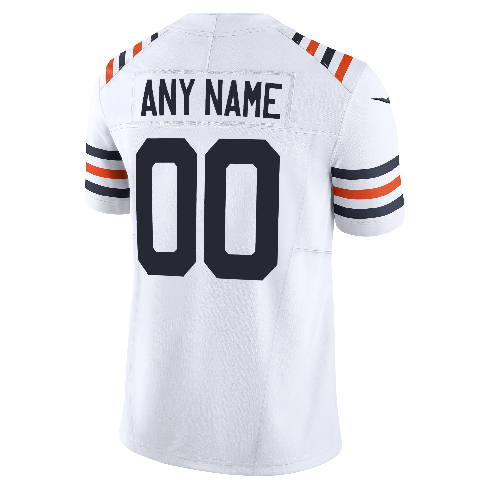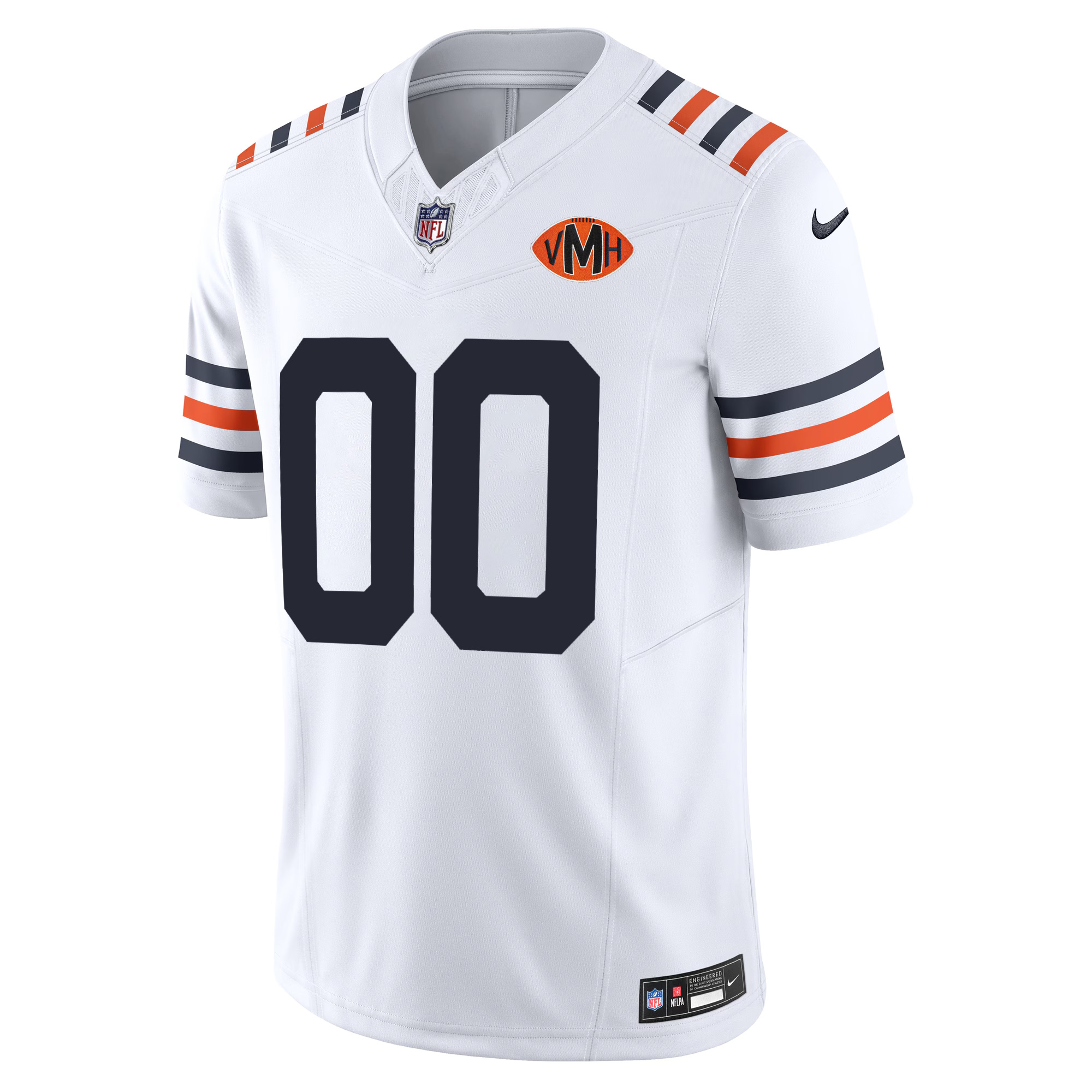 Stand out with Chicago pride in this Custom Chicago Bears Honor Virginia Halas McCaskey Alternate Navy Vapor F.U.S.E Limited Jersey. The alternate navy tone puts a fresh spin on CHI tradition while honoring the impact of Virginia Halas McCaskey. Your custom stitched name and embroidered numbers add personal detail, complemented by embroidered patches and Bears logos that express true team energy. Designed to fuse heritage and modern style, this alternate edition delivers a powerful way to represent Chicago Bears football with your own custom identity.