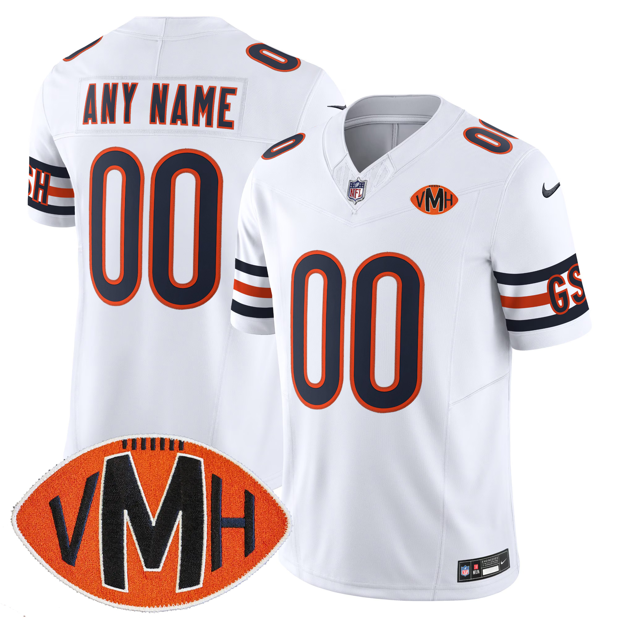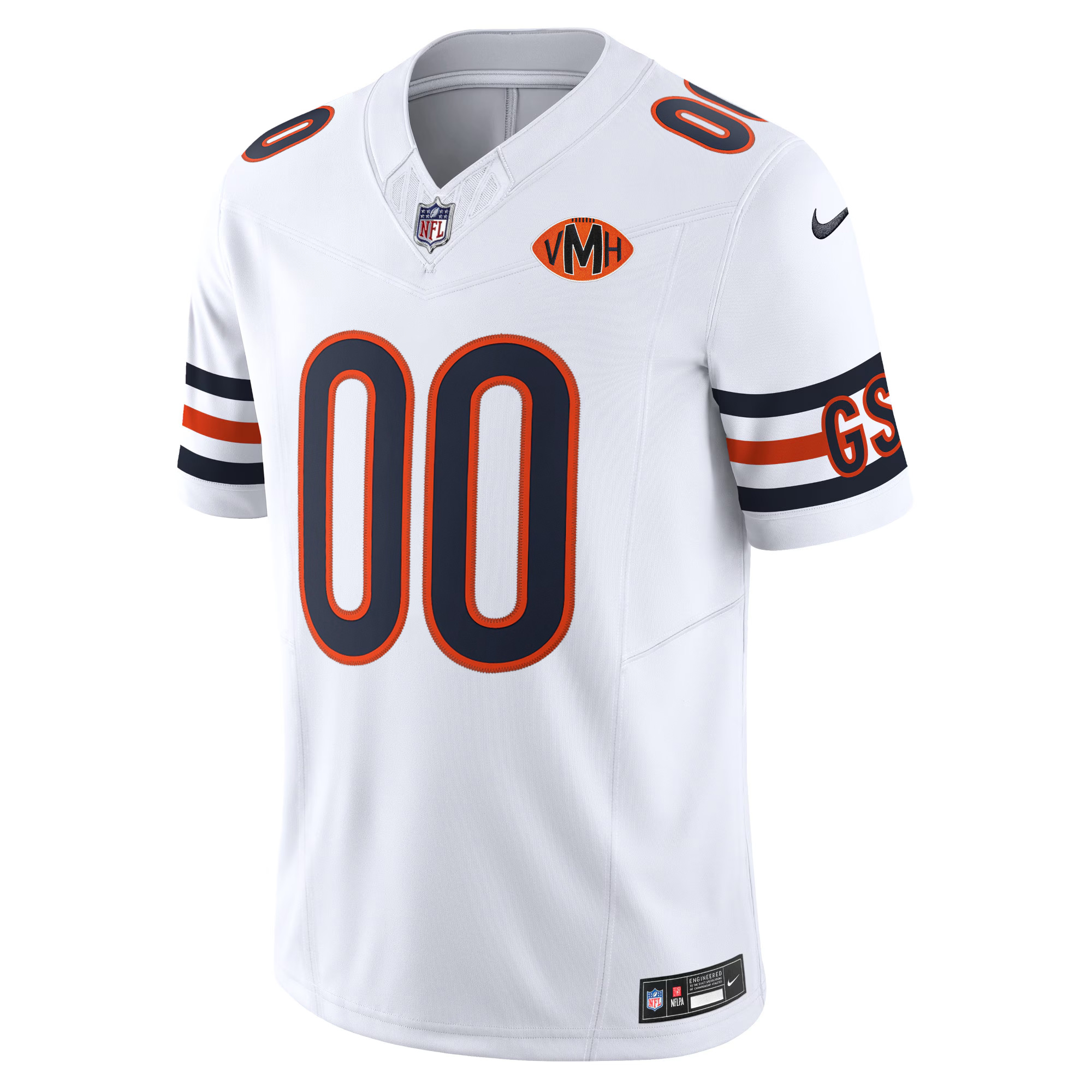 Showcase Chicago pride with this Custom Chicago Bears Honor Virginia Halas McCaskey White Vapor F.U.S.E Limited Jersey, built to celebrate both CHI football heritage and your unique fan identity. The clean white design highlights the honored tribute theme while keeping the Bears’ iconic energy front and center. Your custom stitched name and embroidered numbers create a premium personalized look, enhanced by embroidered team patches and Bears logos. This edition blends elegance and tradition, capturing the essence of Chicago football while allowing you to stand out with your own custom details.