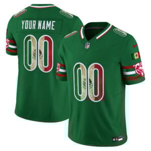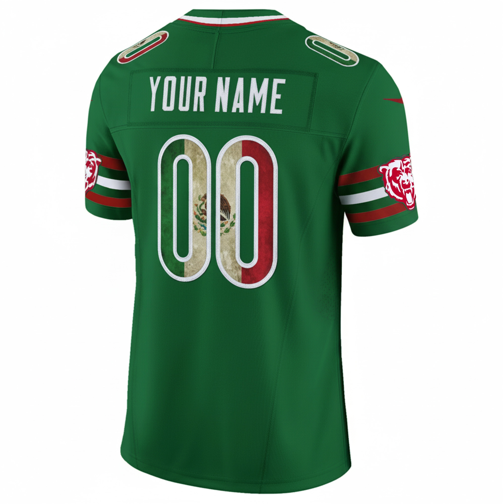 Celebrate Chicago Bears tradition with a vibrant twist in this Mexico Green Vapor F.U.S.E Limited Jersey, merging CHI pride with Mexico-inspired colors. The lively green design highlights the Bears’ identity in a fresh, memorable way, while allowing you to customize with stitched or embroidered name, number, patches, and logo. Built with comfort and durability in mind, this jersey lets you represent both your love for the Bears and cultural pride at the same time. It’s the perfect blend of unique style and team devotion for any true Chicago fan.