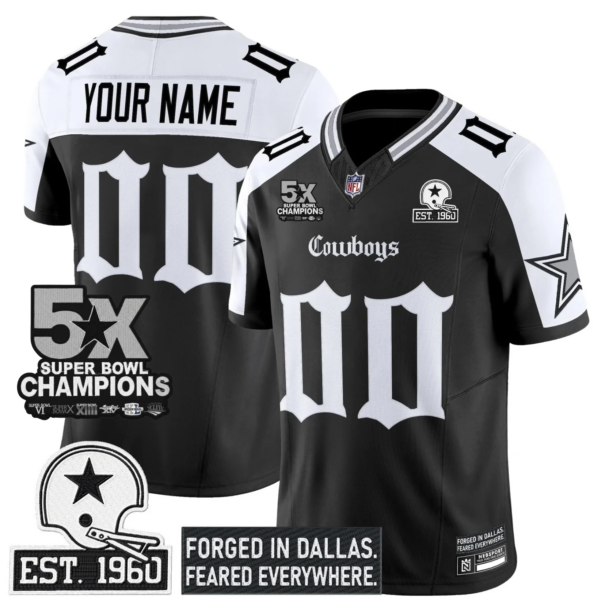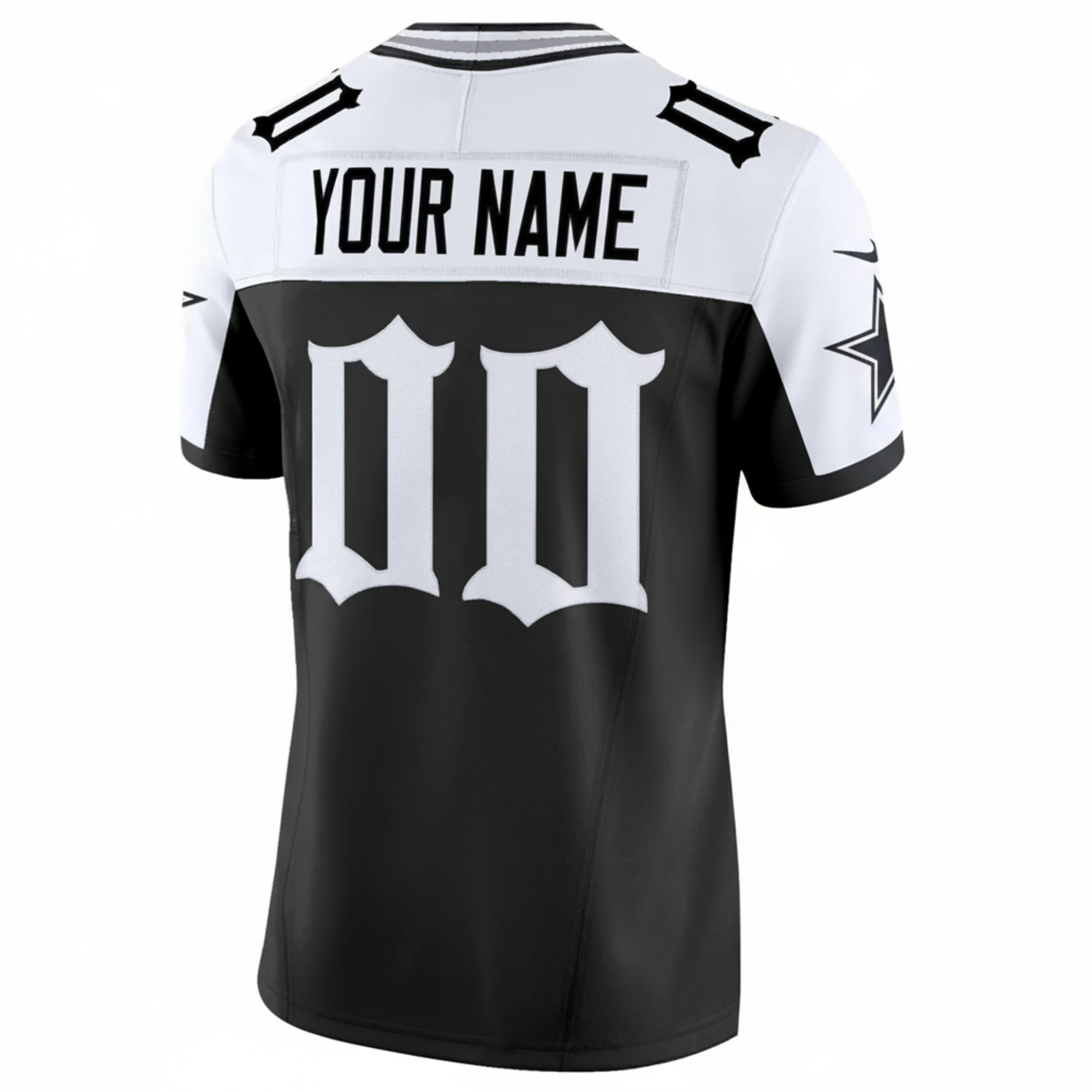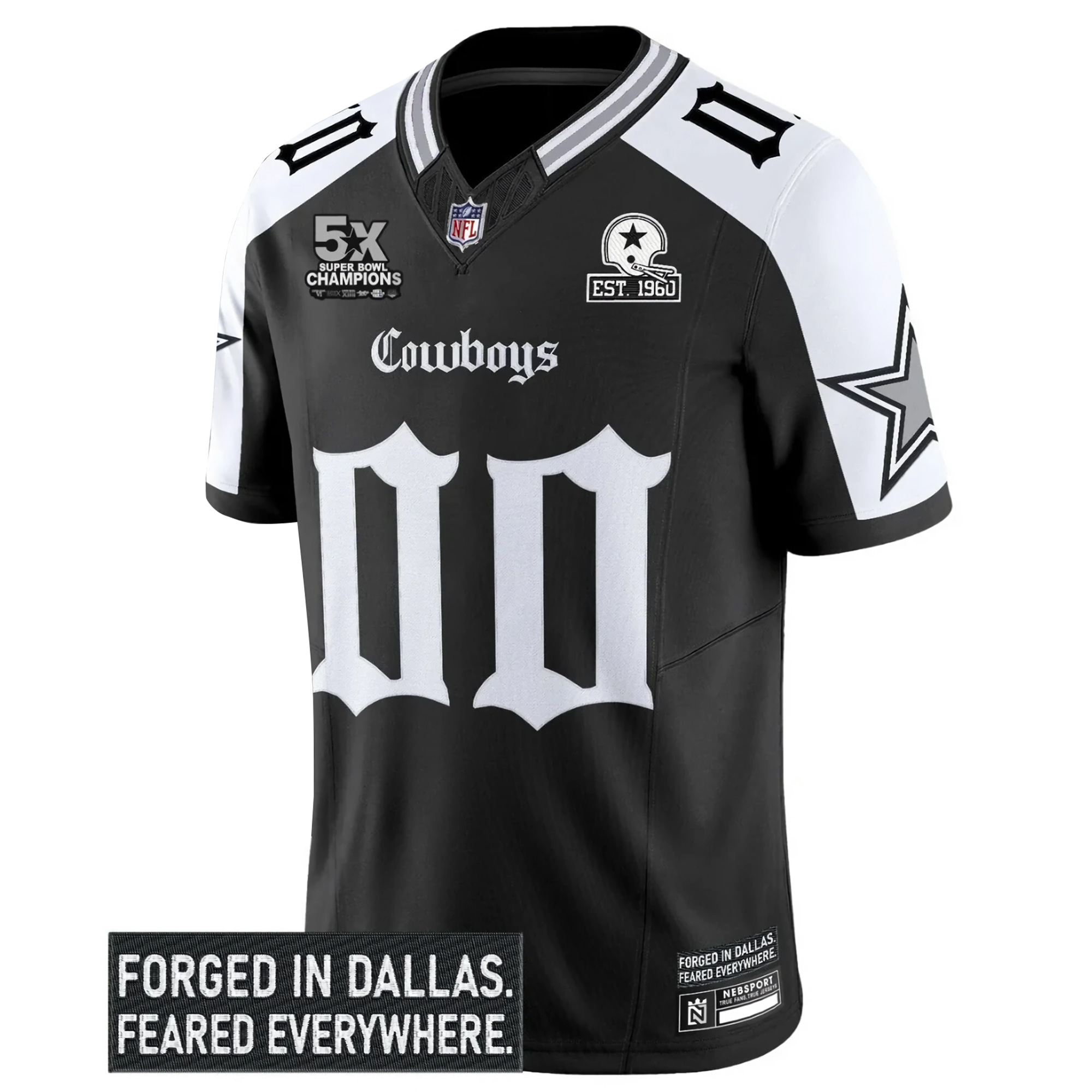 Support the Cowboys in style with this Gothic Lone Star 5x Champions Black Alternate Limited Jersey. Featuring all-stitched team name, number, patch, and logo, this jersey offers a unique design with gothic elements and state pride. Available in oversized sizes for extra comfort. Show off your Cowboys pride in a fresh and bold way!
