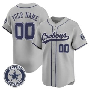 Rep your Dallas Cowboys with the Custom Grey Baseball Jersey. Featuring the team’s name, number, and logo stitched or embroidered with attention to detail, this jersey brings a fresh twist on the classic Cowboys look. The grey color is both modern and versatile, while the state pride patch makes a bold statement. Available in oversized sizes for those who want a laid-back, comfortable fit.