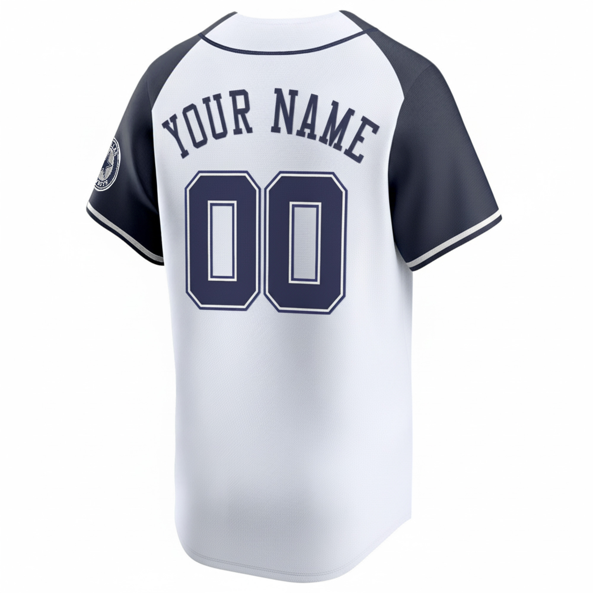Cheer for the Dallas Cowboys in the Custom Navy Alternate Baseball Jersey. With stitched or embroidered team details, including name, number, and logo, this jersey offers a stylish alternative to the traditional look. The navy color symbolizes the Cowboys’ pride, while the state pride patch adds a personalized touch. Available in oversized sizes, this jersey ensures comfort and style for every fan.