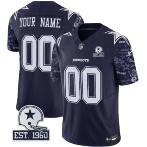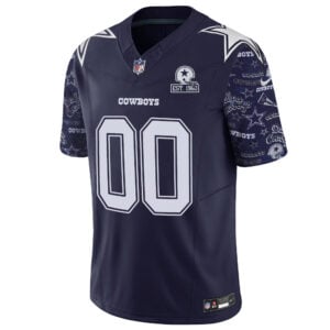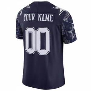 Support your Dallas Cowboys with the Custom Pattern Navy Limited Jersey. Featuring stitched team name, number, patch, and logo, this jersey delivers premium quality and style. The navy color and bold pattern make it a unique addition to your Cowboys gear. Available in oversized sizes for added comfort. Perfect for game day or casual wear!