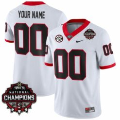 This Custom Georgia Bulldogs Football White Away Jersey – All Stitched is an essential piece of gear for any Georgia Bulldogs football fan looking to highlight their favorite jersey and player. The Custom Georgia Bulldogs Football White Away Jersey and team details provide a kickoff-ready look that elevates your excitement for game day. Made with comfort in mind, this Personalized Georgia Bulldogs football jersey delivers a standard, lightweight fit and features breathable mesh side panels for added ventilation.
