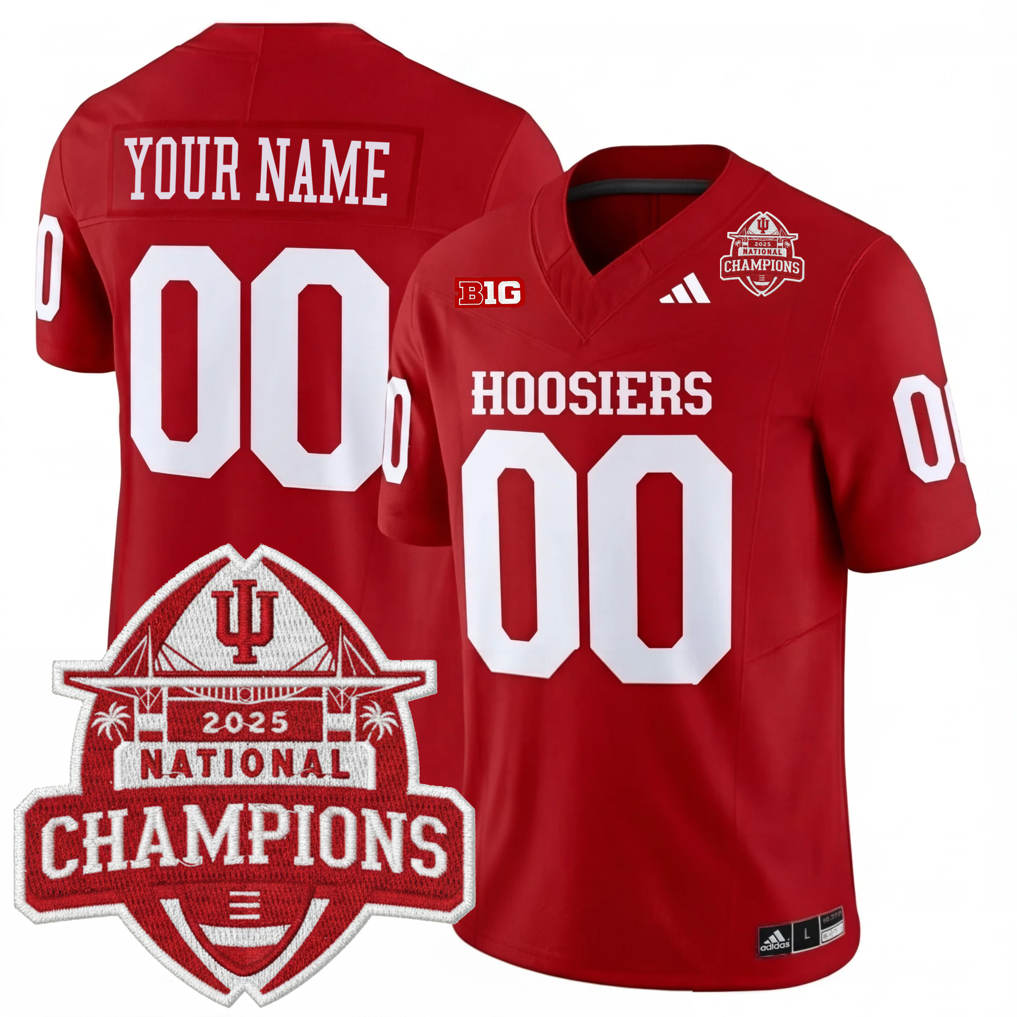 Celebrate history with Indiana University as the Hoosiers capture their first national title in unforgettable fashion. This crimson jersey represents IU pride and the spirit of the Hoosiers, a name deeply tied to the heart of Indiana. Designed to honor the championship run, the player name and number are fully stitched for durability, while the CFP National Champions patch and team logos are carefully embroidered with sharp detail. Built for fans who want to showcase state pride and legacy moments, this jersey also comes in oversized options for a relaxed, confident fit.