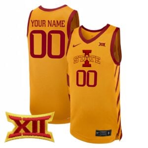 This gold alternate design with the XII patch delivers bold Cyclones energy and Big 12 pride. Iowa State University fans recognize the conference patch as a mark of intense competition and tradition, making it a powerful addition to this vibrant style. The gold tone brings attention instantly, while stitched elements ensure lasting quality and comfort. Ideal for statement game days or fan gatherings, this piece reflects confidence and loyalty to ISU basketball. Many supporters choose it as a standout gift for alumni or passionate fans who enjoy unique designs tied to conference identity. With thousands of satisfied customers, this jersey continues to earn praise for its striking look and strong Cyclones spirit.