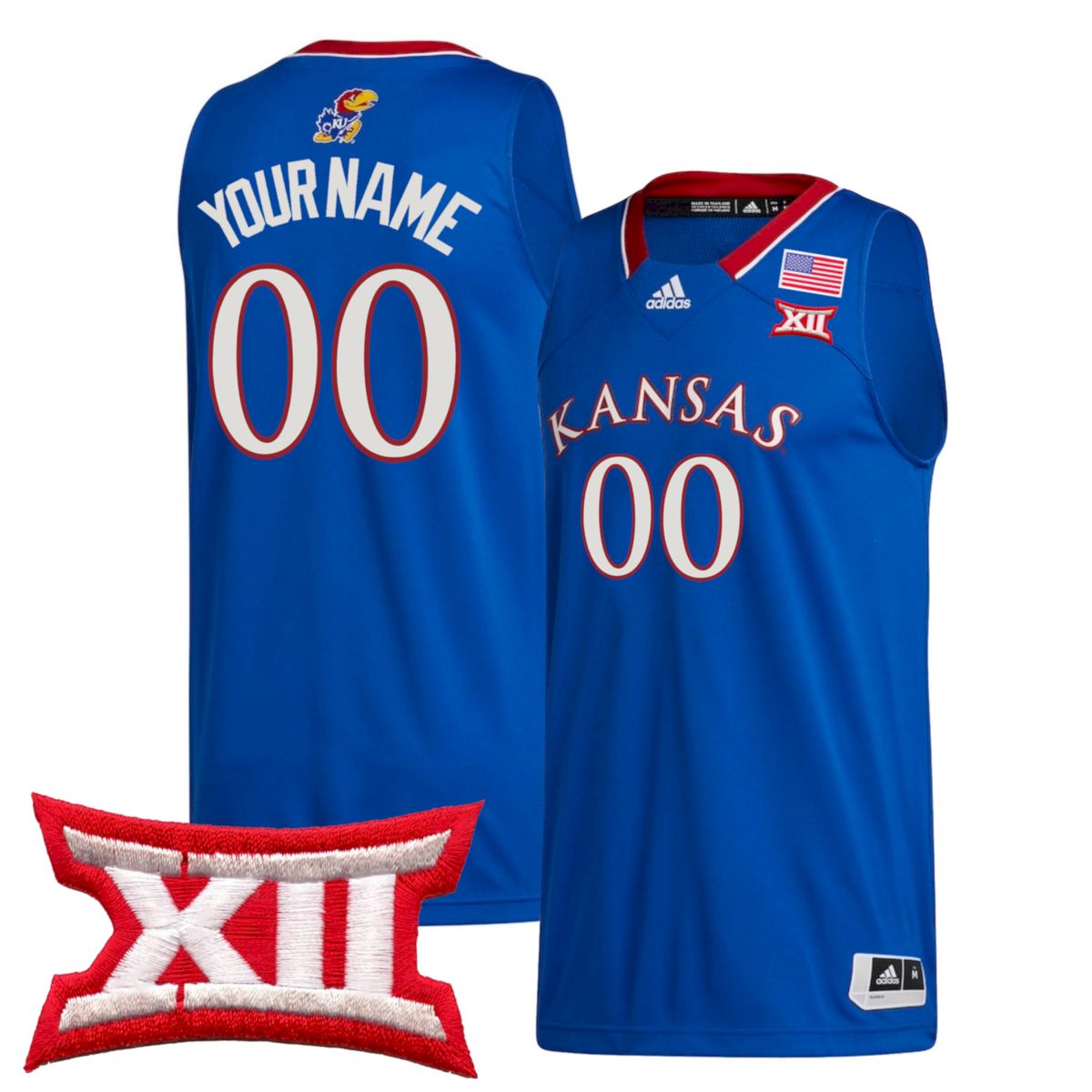 The Custom Kansas Jayhawks Basketball 2021/22 Royal Away Jersey w/ XII Patch showcases bold KU road tradition. Representing the University of Kansas, this royal blue jersey symbolizes confidence and statewide pride. Fully stitched name and number details stand out against the vibrant color, complemented by an embroidered Jayhawks logo. The stitched XII patch completes the design, making this jersey an excellent choice for fans who want to represent Kansas basketball with strength and style.