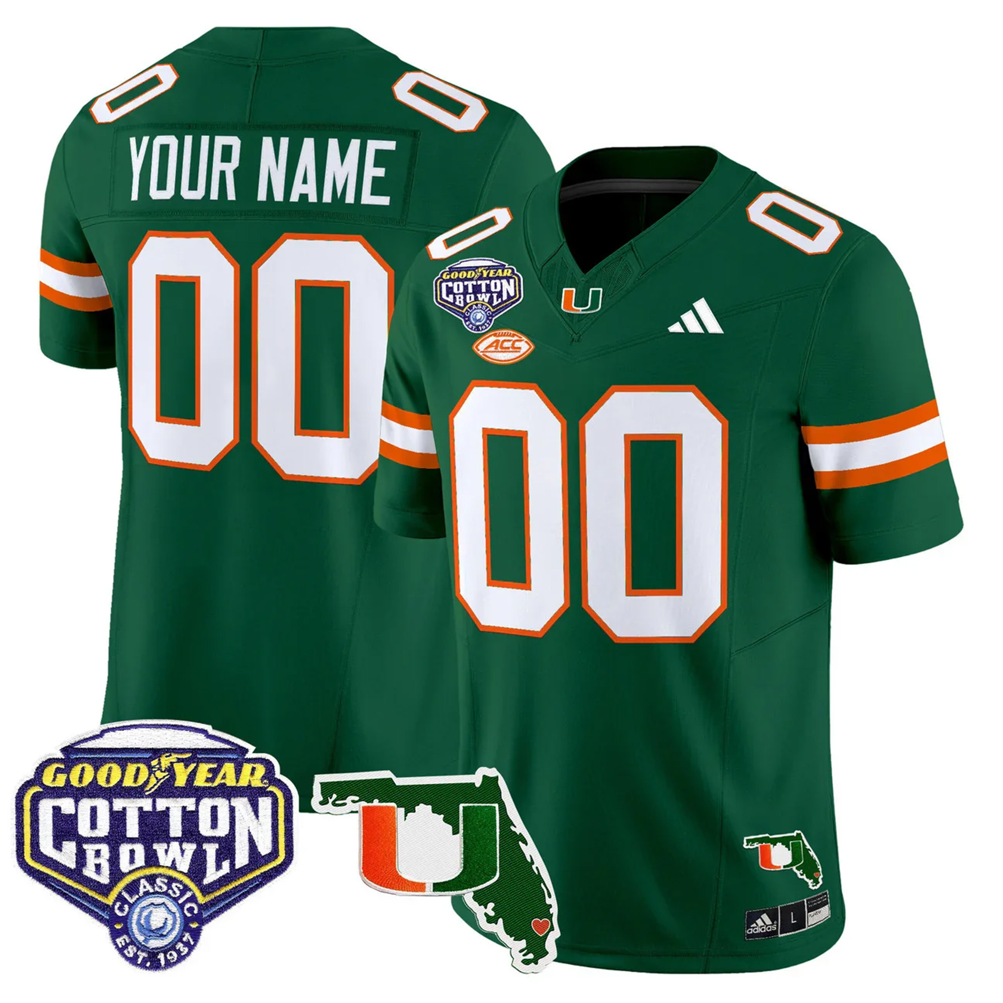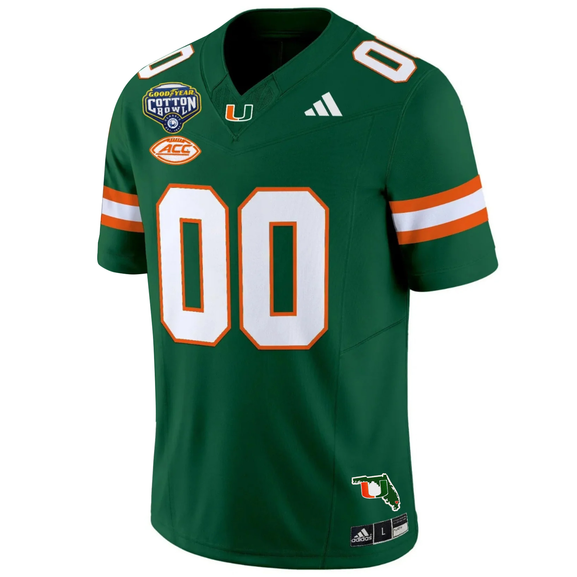 Custom Miami Hurricanes Football 2025 Goodyear Cotton Bowl Florida Patch Green Limited Jersey – All Stitched