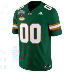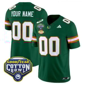 This Green Limited Jersey delivers classic Miami Hurricanes color with Cotton Bowl significance. Showcasing the Hurricanes team name and Canes short name, the rich green tone reflects strong Florida state pride. Custom stitched name and number provide durability, while embroidered logos and event patches enhance depth and texture. Perfect for fans who prefer traditional team colors with special-edition flair, this jersey is built for comfort and style, with oversized options available.