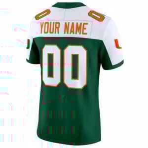 This Green Alternate Fiesta Bowl Limited Jersey showcases Miami Hurricanes identity with a fresh visual approach. Displaying the Hurricanes team name and Canes short name, the alternate styling highlights Florida pride through embroidered details. Custom name and number are stitched for durability, while logos and Fiesta Bowl patches add depth and character. The green alternate look offers versatility and boldness in equal measure. Designed for comfort, oversized options are available.