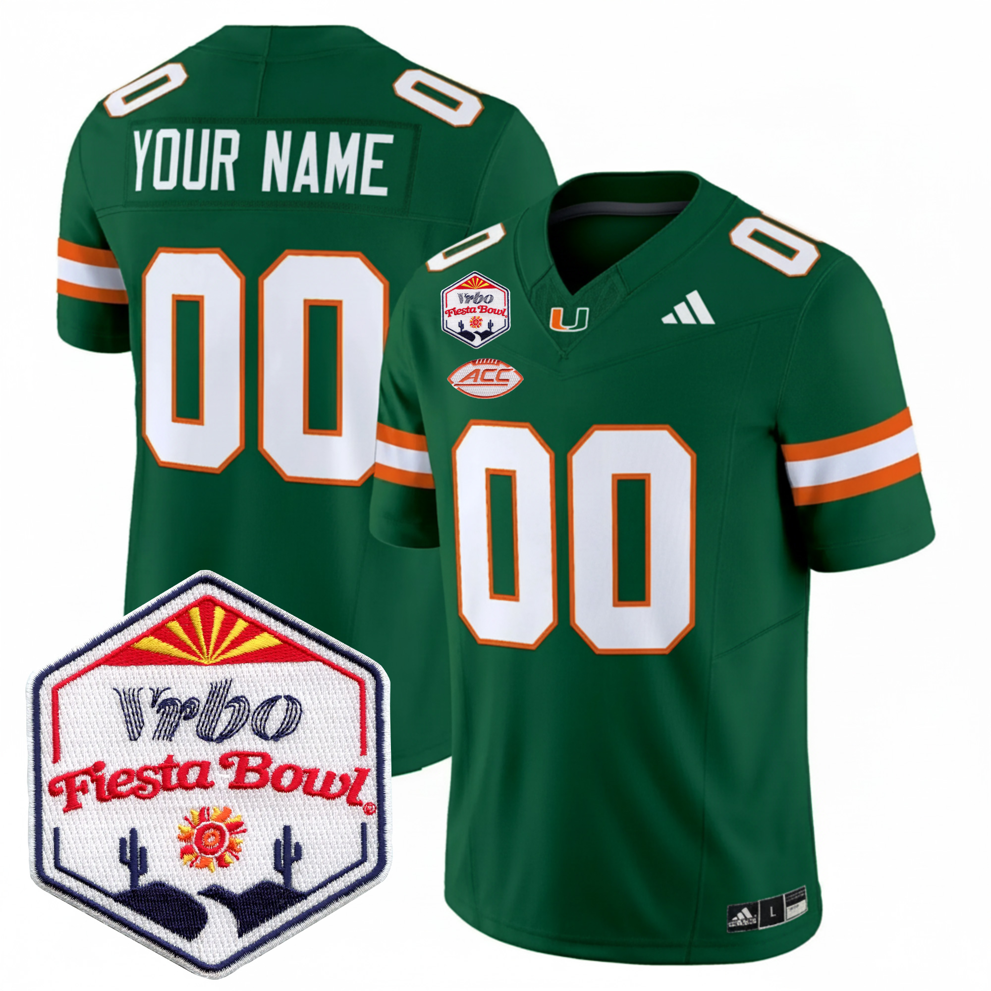 Custom Miami Hurricanes Football Vrbo Fiesta Bowl Green Limited Jersey – All Stitched