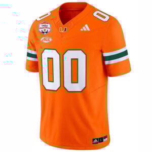 Inspired by Fiesta Bowl energy, this Orange Limited Jersey celebrates the Miami Hurricanes with vibrant Florida pride. Featuring the Hurricanes team name and Canes short name, the bright orange base delivers instant impact. Custom stitched name and number are paired with embroidered logos and Fiesta Bowl patches for added depth. Designed for fans who enjoy event-inspired styles and bold color, this jersey offers comfort and confidence, with oversized options available.