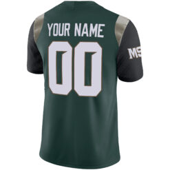 Show your Spartan pride with this Custom Michigan State Spartans Football Jersey in classic green. Featuring all-stitched name and number, this game jersey offers a personalized look with official team details. Built for comfort, it delivers a lightweight fit and breathable mesh panels—perfect for any Michigan State fan on game day.