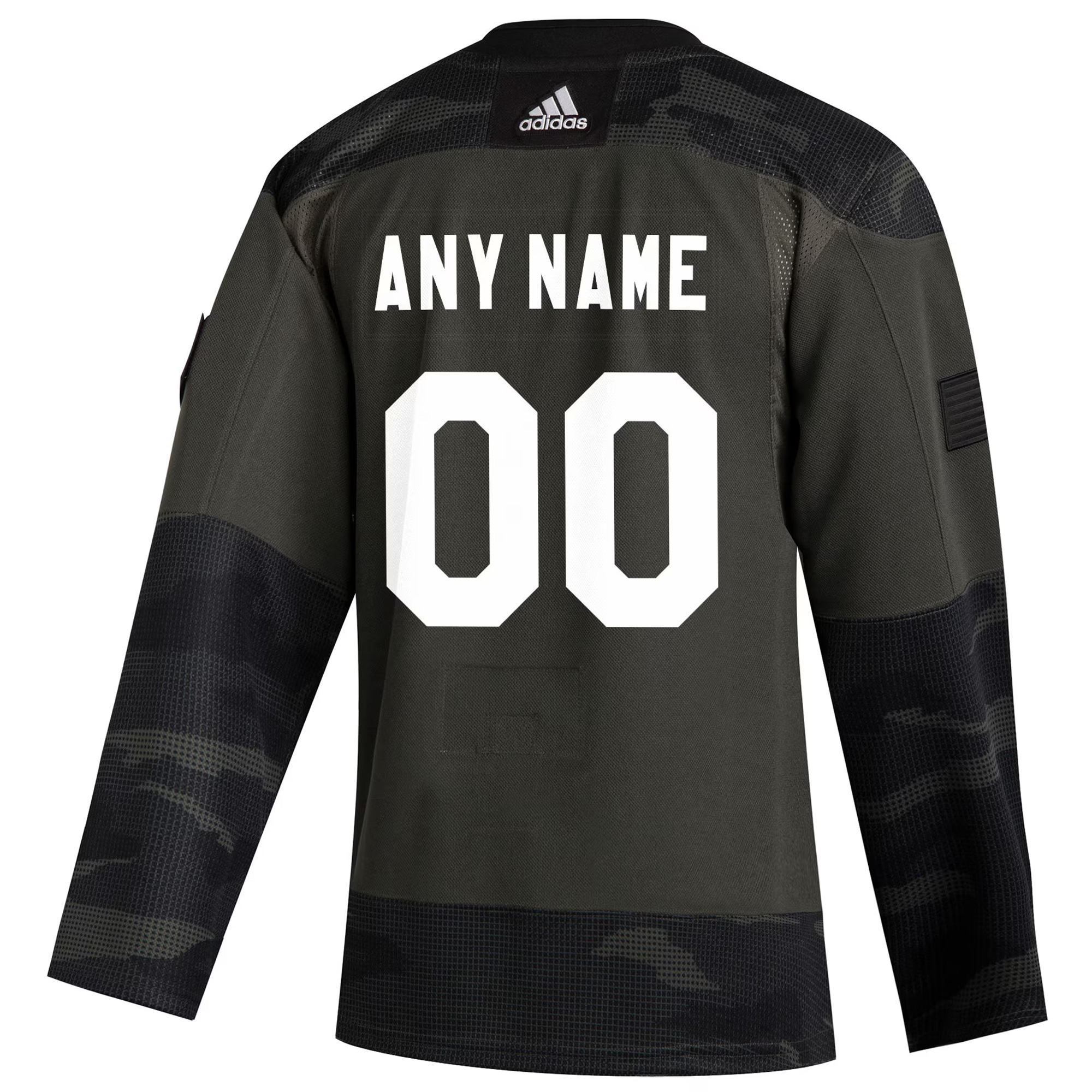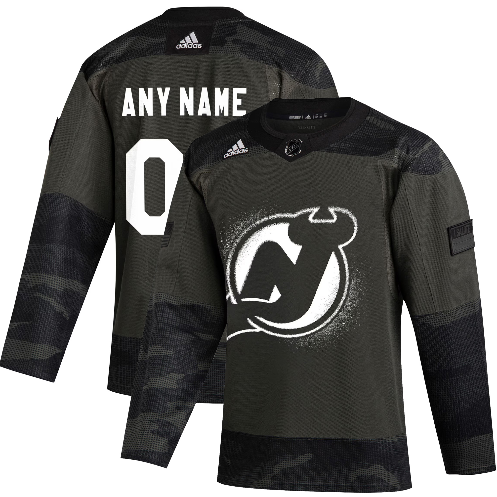 Blend tradition and honor in the Custom New Jersey Devils Camo Military Appreciation Jersey. Highlighted by stitched patches, logos, and embroidered numbers, the camo styling sets this apart as a tribute to service and state spirit. Devils fans can wear it proudly to represent both New Jersey and those who serve.