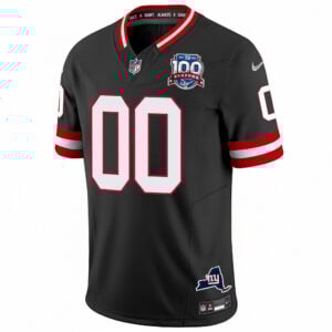 Bring a sleek modern edge to your Giants wardrobe with this Black 100th Season Anniversary custom jersey. Representing the New York Giants with a darker tone, this design expresses NYG state pride through a bold colorway and fully stitched or embroidered name, number, patch, and logo details. Add your custom personalization to make it uniquely yours while celebrating a century of Giants football tradition. Ideal for game day, streetwear, or collectors. Oversized sizes up to 5XL, 6XL, and 7XL.