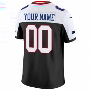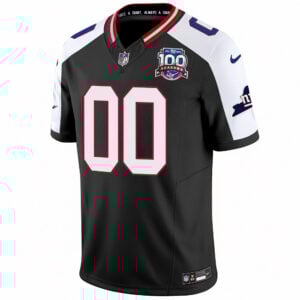 Elevate your fanwear with this Black Alternate 100th Season Anniversary custom jersey for the New York Giants. Featuring a bold alternate palette, this jersey blends NYG state pride with a modern, stylish edge. Customize your name and number, each stitched or embroidered along with the logos and anniversary patches for long-lasting quality. Whether you’re collecting or wearing it on game day, this piece delivers a standout look that celebrates 100 years of Giants football. Oversized 5XL–7XL available.