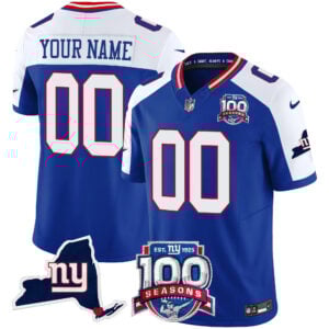 Honor 100 seasons of Giants football with this Royal Blue Alternate custom jersey, built for fans who love a refreshed take on NYG identity. The alternate accents bring a new dimension to classic New York Giants styling, while all name, number, logo, and patch elements are stitched or embroidered for a premium finish. Add your personalized details to express your own Giants pride while celebrating New York heritage. Oversized men’s sizes 5XL–7XL are available for a roomy, comfortable fit.