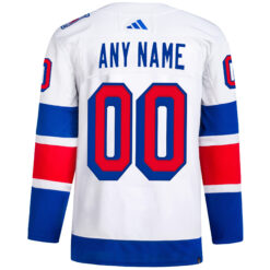 Celebrate outdoor hockey in sustainable style with the Custom New York Rangers White 2024 Stadium Series Primegreen Jersey. Designed for the NYR faithful, this jersey represents New York state pride and a commitment to the environment, crafted with Primegreen high-performance recycled materials. The stitched name, number, and embroidered crest reflect premium quality, while the clean white and bold accents capture the excitement of the Stadium Series. A symbol of innovation, tradition, and sustainability, this jersey lets you wear your Rangers pride with confidence and conscience, both on and off the ice.