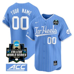 This Custom North Carolina College Baseball World Series Jersey – Blue Pinstripe is an essential piece of gear for any custom fan looking to highlight their favorite player. The custom North Carolina Tar Heels jersey and team details provide a kickoff-ready look that elevates your excitement for game day. Made with comfort in mind, this custom jersey delivers a standard, lightweight fit and features breathable mesh side panels for added ventilation.