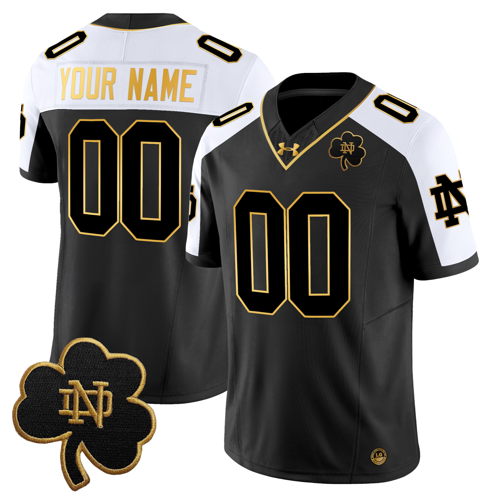 Rep your team in style with this Custom Notre Dame Fighting Irish Football Alternate Black Gold Jersey – All Stitched.
