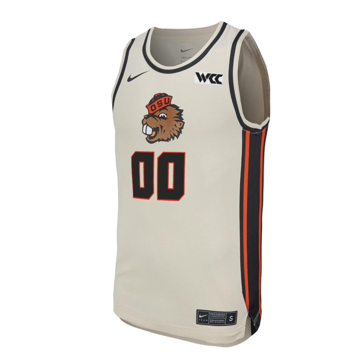 This natural home alternate basketball look with a WCC patch blends tradition with transition at Oregon State University. The Beavers short name carries Oregon pride into a new conference era.
