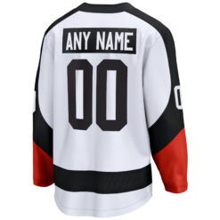 Celebrate innovation and tradition with the Custom Philadelphia Flyers White Special Edition 2.0 Jersey. Featuring stitched name and number and embroidered team logos and shoulder patches, this design embodies Pennsylvania state pride and the creative energy of the PHI Flyers. The crisp white colorway with special detailing makes it a standout choice for fans who appreciate both classic and contemporary looks.