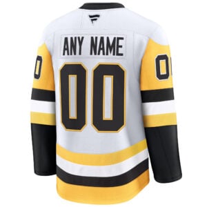 The Custom Pittsburgh Penguins White Away Premium Jersey – All Stitched captures the elegance and power of the Penguins on the road. Representing the heart of Pittsburgh, PA, this white-based design is accented by bold black and gold details, showcasing the team’s iconic color palette. The stitched logo, name, number, and shoulder patches provide a premium textured finish that feels as good as it looks. Whether you’re cheering from the stands or watching from home, this jersey lets you display your Penguins pride with confidence and authenticity. Built for fans who demand comfort and detail, this piece stands as a true symbol of loyalty to the team.