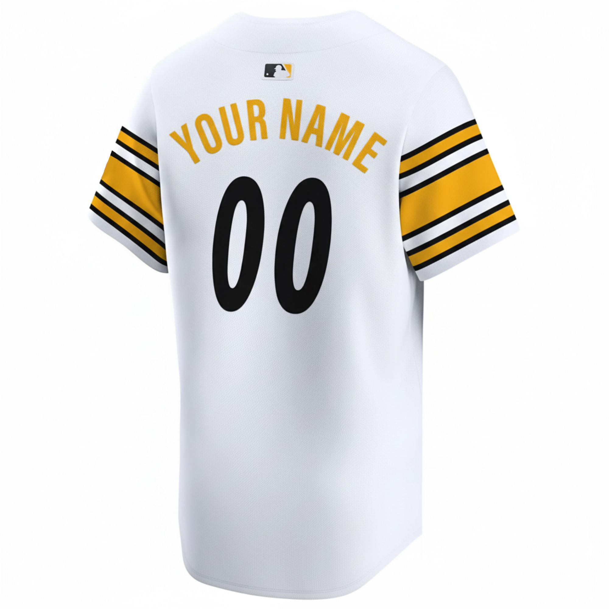 Celebrate a historic win with the Pittsburgh Steelers 50th Anniversary Super Bowl IX White Baseball Jersey. This design pairs clean white tones with Steelers pride and Steel City tradition. Featuring stitched or embroidered team name, short name, number, logo, and anniversary patch, it delivers crisp visuals with meaningful detail. The baseball jersey cut adds a versatile, lifestyle-ready feel. Oversized sizing is available for fans who want a relaxed fit while honoring Pittsburgh football history.