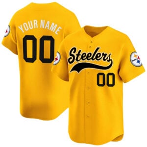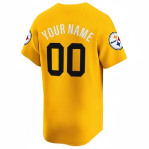 Finish strong with the Pittsburgh Steelers Gold 2025 Baseball Jersey. This bold colorway celebrates Steelers pride and Steel City energy with a standout gold finish. The team name, short name, number, logo, and 2025 patch are all stitched or embroidered for premium texture and depth. Designed in a baseball jersey style, it’s perfect for fans who want something different but meaningful. Oversized sizing is available for a relaxed, confident fit.
