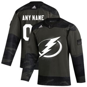 Show eco-conscious support with the Custom Tampa Bay Lightning Camo Military Appreciation Primegreen Jersey – All Stitched. Built from sustainable materials and decorated with embroidered team insignia, stitched patches, and player numbers, it’s perfect for fans who value purpose and pride.