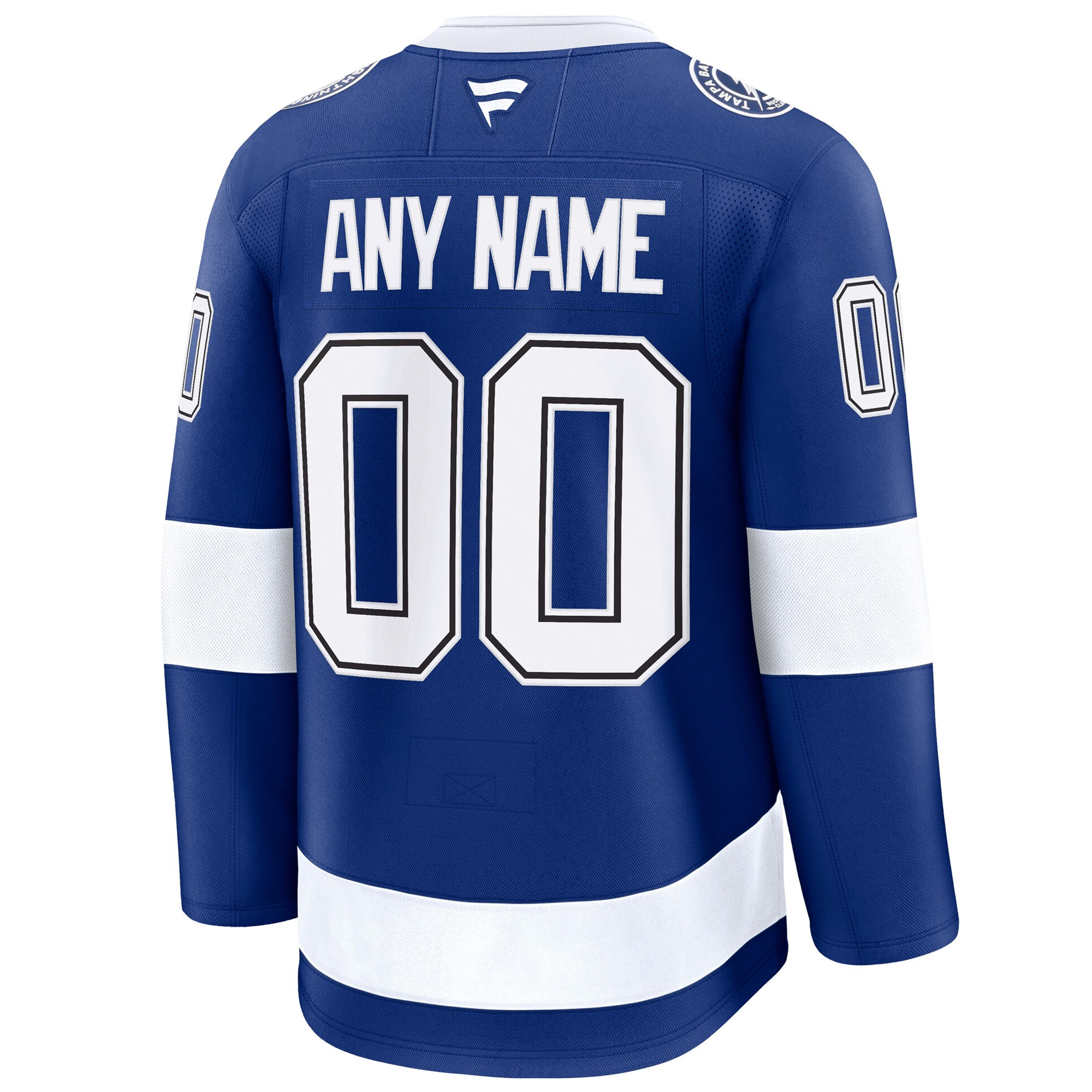 Celebrate your Florida pride with the Custom Tampa Bay Lightning Royal Home Premium Jersey – All Stitched. Designed for loyal fans of the Tampa Bay Lightning, this royal blue jersey embodies the energy of the Sunshine State and the relentless power of the Bolts. Featuring stitched and embroidered name, number, team logo, and shoulder patches, this jersey delivers both quality and pride for every fan cheering at Amalie Arena or from home.
