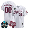This Custom Texas A&M College Baseball World Series Jersey – Maroon Pinstripe is an essential piece of gear for any custom fan looking to highlight their favorite player. The custom Texas A&M jersey and team details provide a kickoff-ready look that elevates your excitement for game day. Made with comfort in mind, this custom jersey delivers a standard, lightweight fit and features breathable mesh side panels for added ventilation.